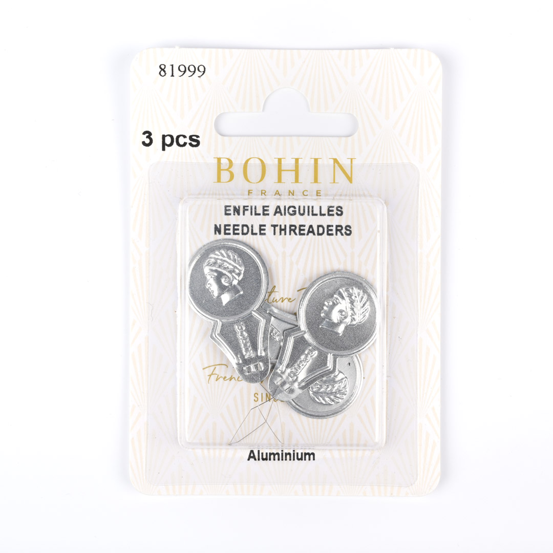 3 Enfile Aiguille Bohin en aluminium Accessoire indispensable pour faciliter l’enfilage des aiguilles à coudre ou à broder. Voir les autres produits de mercerie: Bohin