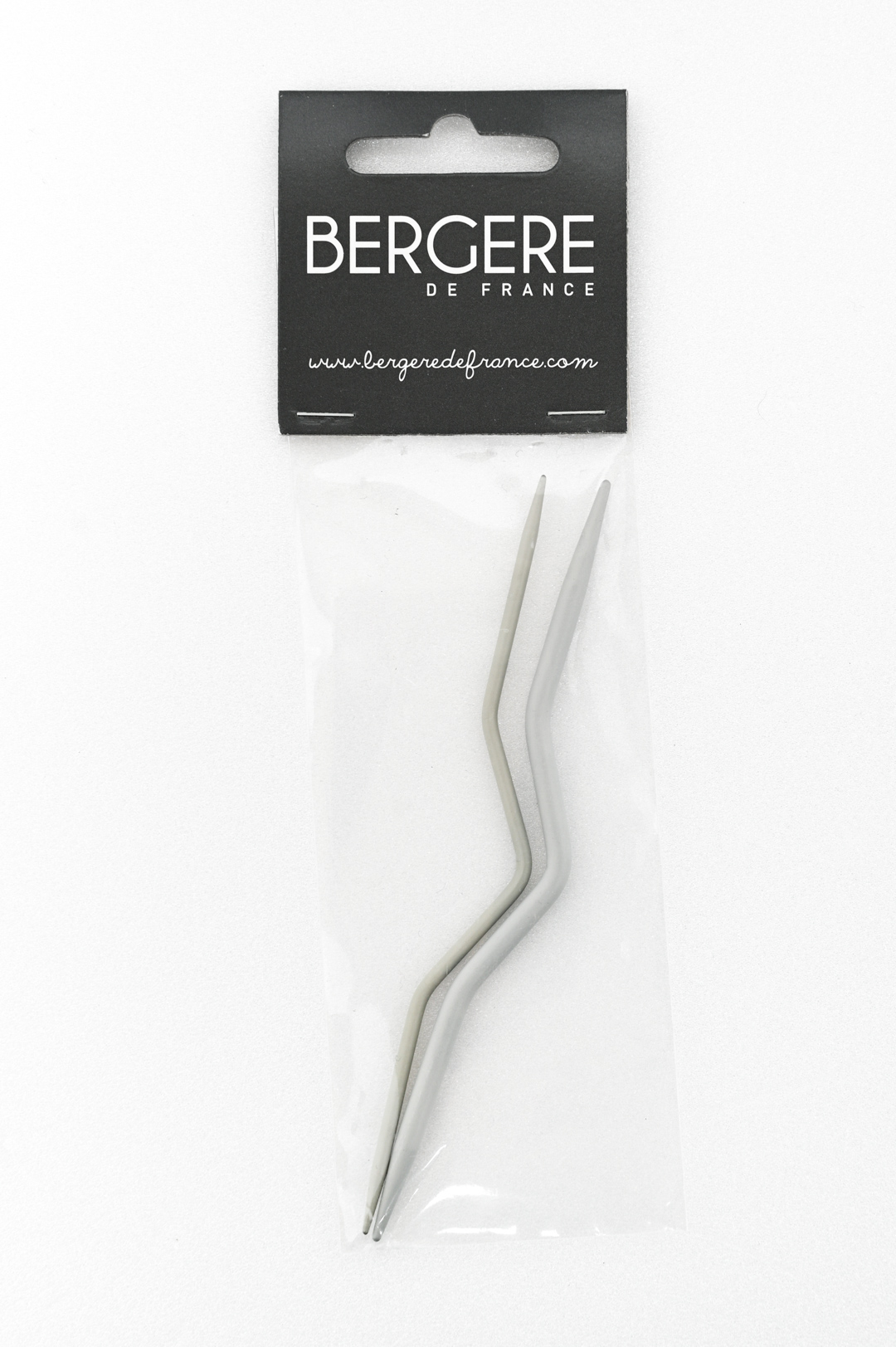 Aiguilles à torsades Marque : Bergère de France Lot de 2 aiguilles à torsades, 2 tailles différentes(fils fins et plus épais). Longueur : 14 cm Aluminium Aiguilles idéales pour la réalisation de torsades dans vos ouvrages.
