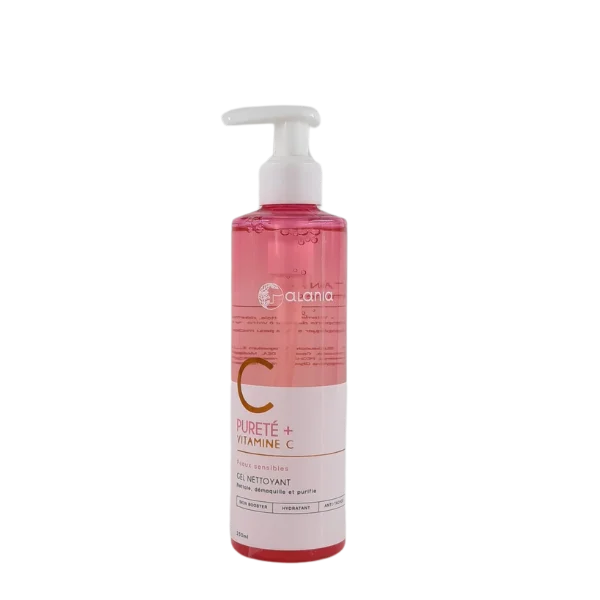 ALANIA PURETE+ VIT C GEL NETT P/SENS 250ML est un gel nettoyant doux, spécialement conçu pour purifier, démaquiller et nettoyer la peau en profondeur. Grâce à sa formule enrichie en vitamine C et en extrait de cerise des Antilles, il apporte éclat et fraîcheur tout en respectant l’équilibre des peaux sensibles. Votre peau est nette, lumineuse et parfaitement protégée.
