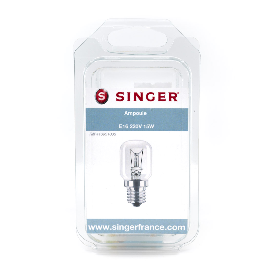 Ampoule pour machines Singer E16, 15W 220/230V. Compatible avec les machines Ă coudre SINGER. Ampoule pour machine Ă coudre Ă visser.