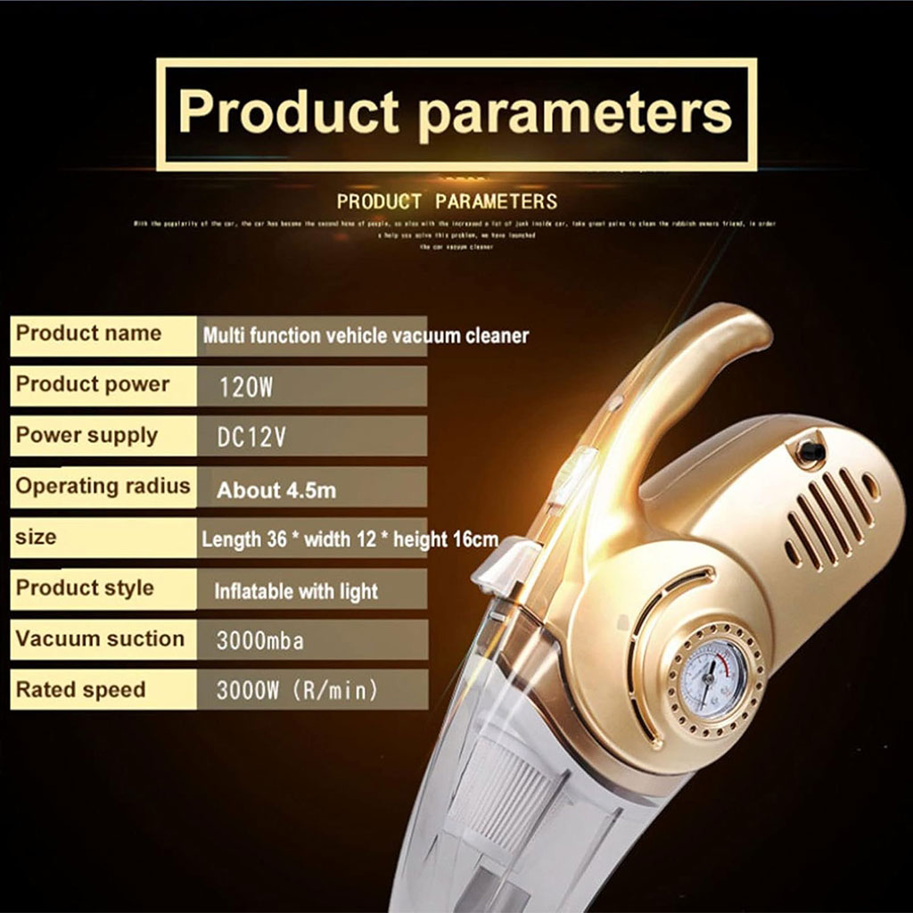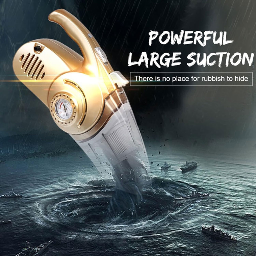 Aspirateur Portable 4 en 1 pour Voiture avec Gonfleur de Pneu Numérique – مكنسة كهربائية وجهاز نفخ العجلات