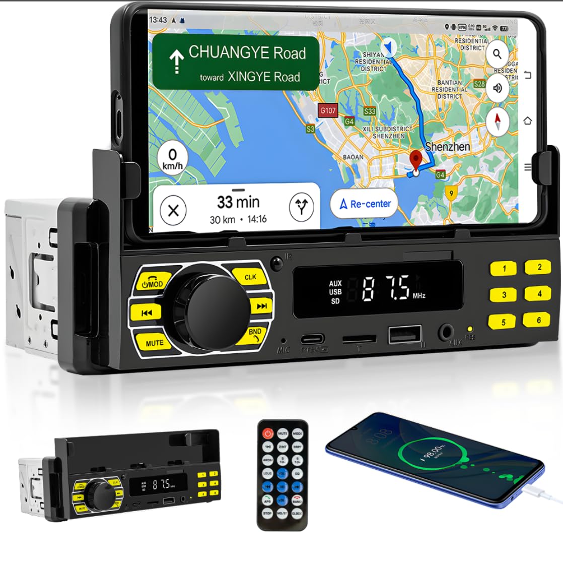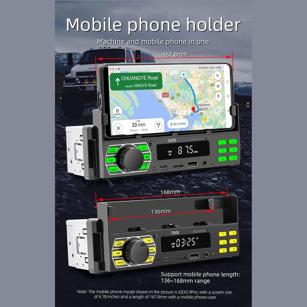 Autoradio Bluetooth DIN avec Support Téléphone – راديو سيارة بلوتوث مع حامل هاتف