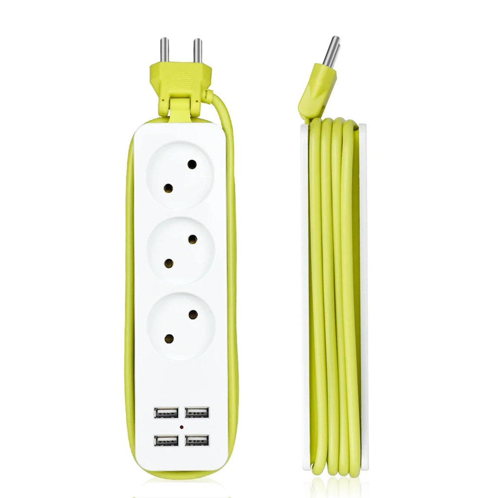 AVEL Multiprise 3 Sockets avec 4 ports USB Cordon 1,8 m Enroulable – مقبس طاقة مع منافذ شحن
