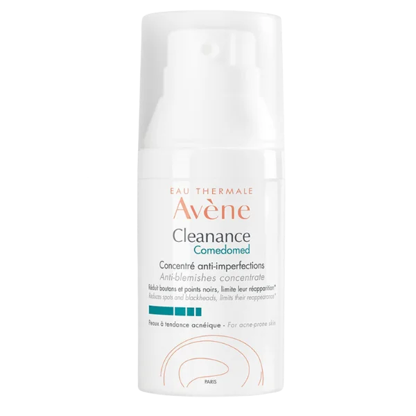 - Cleanance Comedomed 30 ml : Ce soin ciblé agit directement sur la formation des imperfections grâce au Comedoclastin™, actif végétal breveté issu du chardon marie. Il aide à réduire boutons et points noirs tout en limitant leur réapparition. Enrichi en Eau thermale d’Avène, il apaise les irritations et favorise le confort cutané. Sa texture légère pénètre rapidement et laisse la peau nette, matifiée et visiblement plus uniforme.