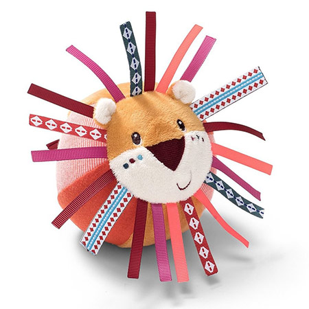 Découvrez la balle Jack le lion de Lilliputiens, un jouet d’éveil simple mais amusant que les enfants adorent. Les petits doigts peuvent facilement attraper et faire rouler cette petite balle de Jack le Lion aux jolies couleurs vives. Un lion a attraper par sa crinière de rubans colorés. Un merveilleux cadeau de naissance très original.