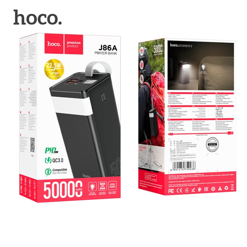 Banque d’alimentation HOCO J86A Powermaster 22,5W 50000mAh Avec Affichage LCD et Lampe douce