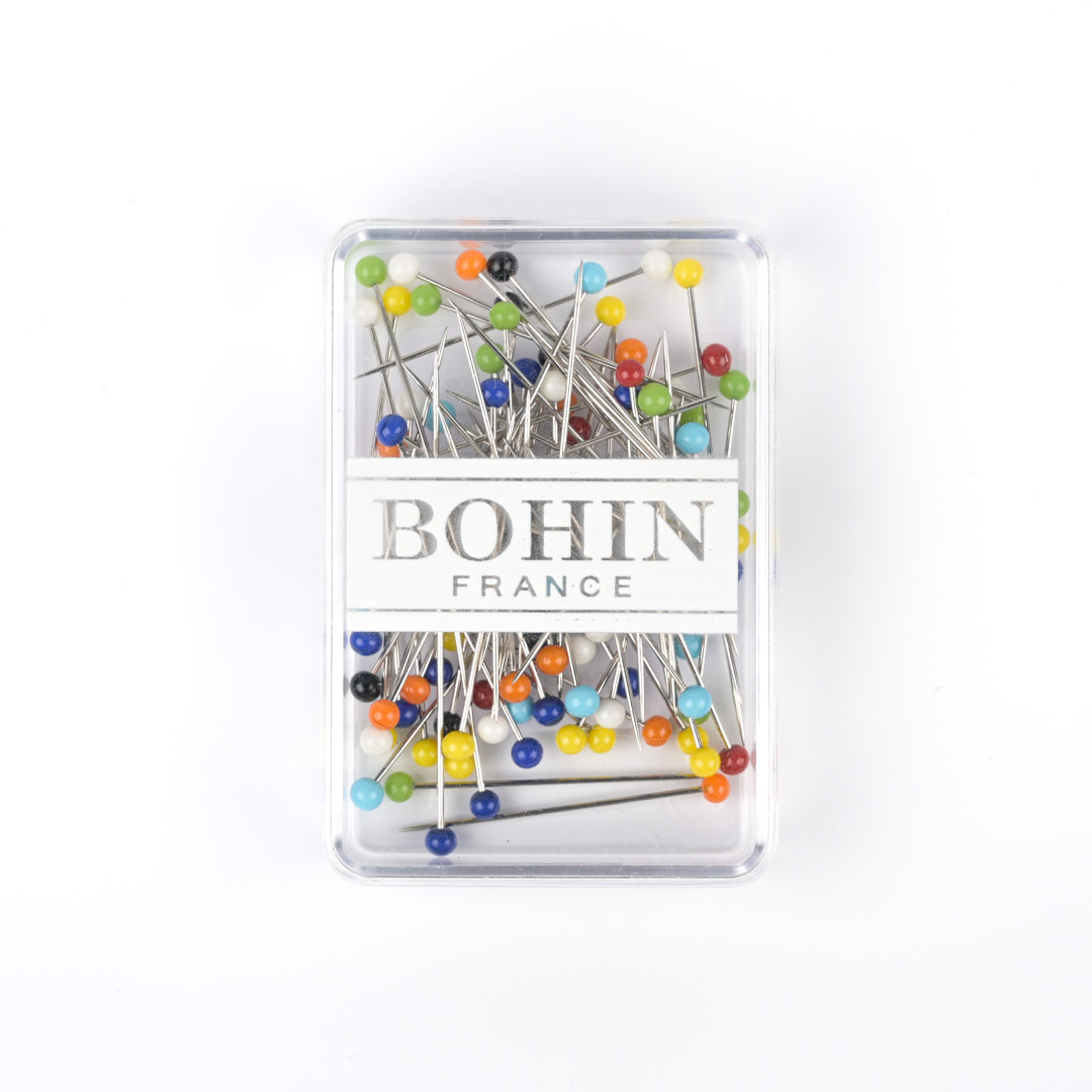 Boîte de 80 épingles à tête en verre BOHIN Têtes d’épingles multicolores Hauteur : 30 mm Diamètre : 6 mm Découvrez nos autres accessoires de mercerie : Accessoires mercerie