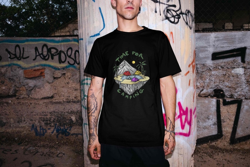 - Description : T-shirt en coton. Décorés de motifs évoquant les joies du camping.