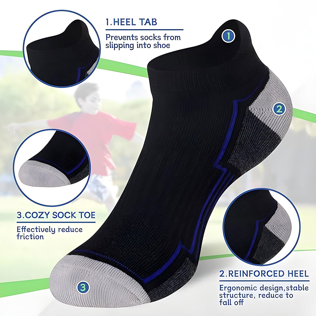 Offrez aux hommes actifs le confort nécessaire pour profiter de leurs sports et activités préférés grâce aux socquettes SeeyAN. Dotées d’une semelle coussinée et d’un soutien de la voûte plantaire, elles garantissent un confort et une stabilité optimaux pour la course, le basket-ball, le football, la randonnée, le saut, la marche et d’autres activités physiques. Composées à 85 % de coton et à 15 % d’élasthanne, ces chaussettes assurent respirabilité et souplesse, gardant les pieds frais, secs et protégés des blessures. Elles sont équipées de languettes au talon facilitant l’enfilage et empêchant les chaussettes de glisser pendant l’effort.Parfaites pour le…
