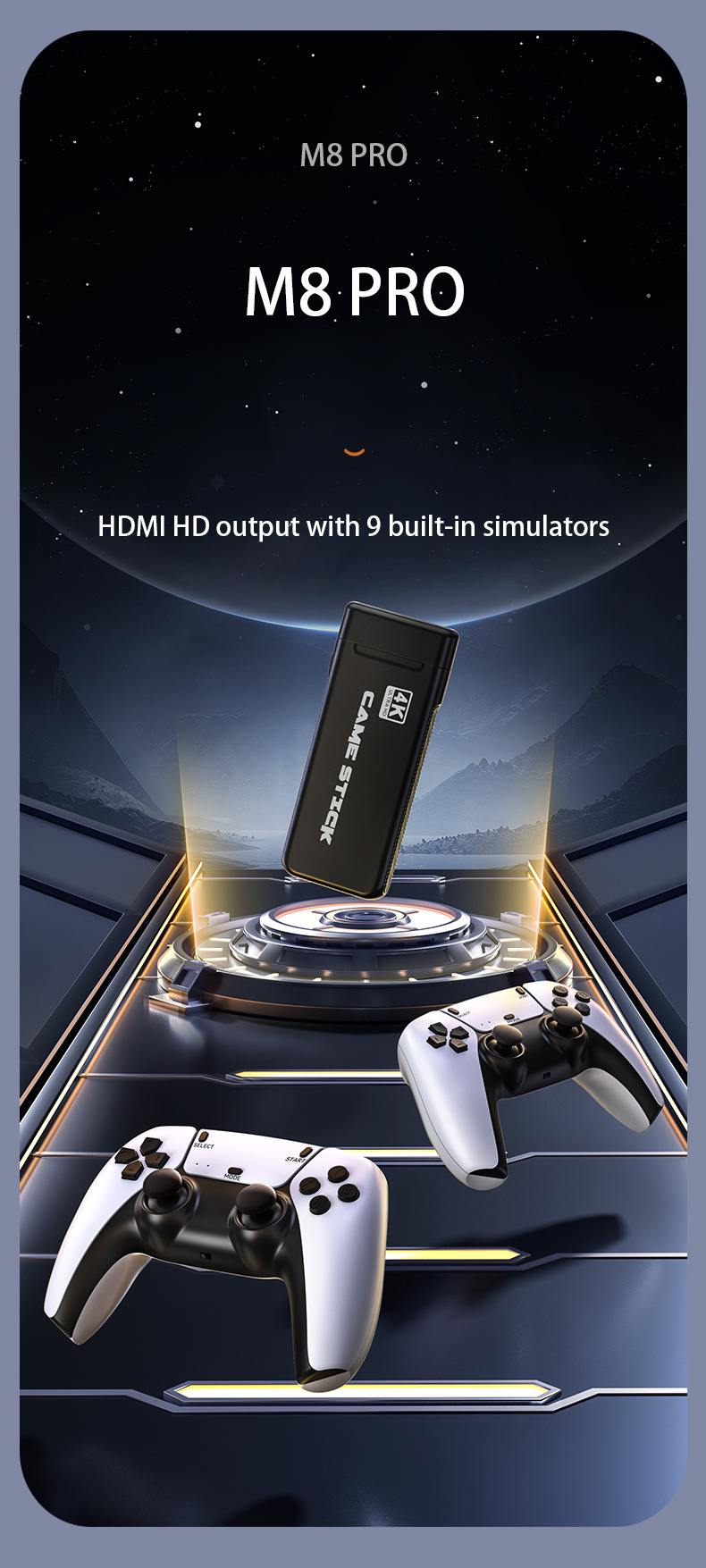 Console de jeu vidéo M8 Pro Game Stick, 4K HDMI HD, 2.4G, manette sans fil pour PS1, David, GB, GBA, arcade, console de jeu TV rétro, plus de 20000 jeux