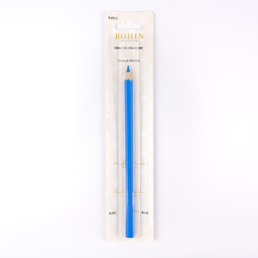 Crayon craie Bleu Bohin Le crayon craie Bohin vous permet de tracer sur tous types de tissus. Il est disponible en 3 couleurs : Blanc, bleu et rouge. Voir les autres produits de mercerie: Bohin