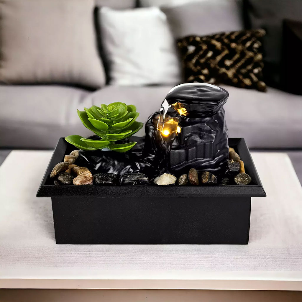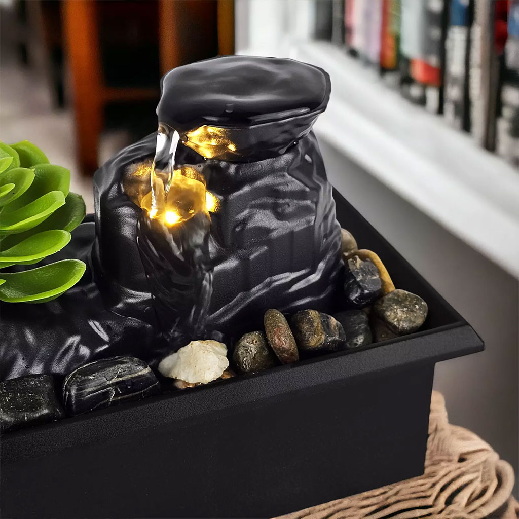 Fontaine à eau cascade avec éclairage LED pour décoration intérieure et ambiance V2