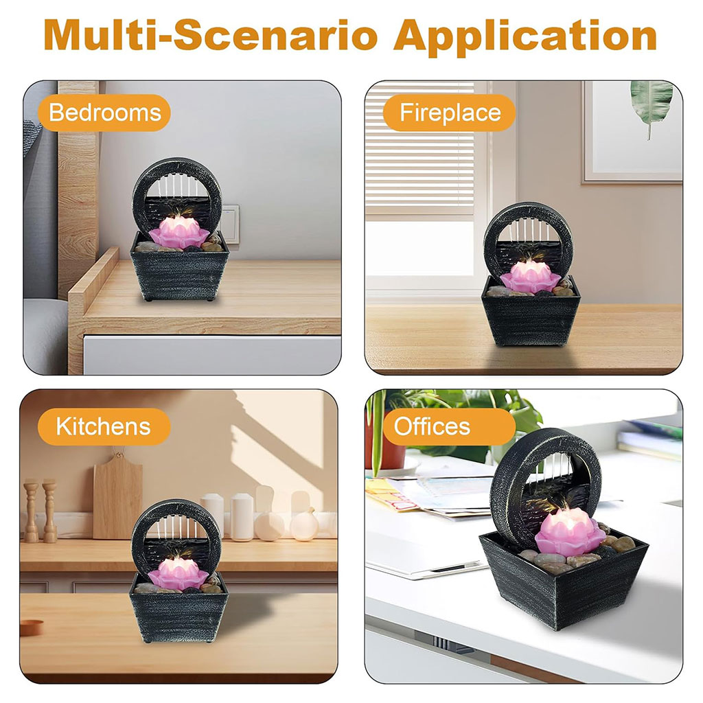 Fontaine à eau cascade avec éclairage LED pour décoration intérieure et ambiance V3