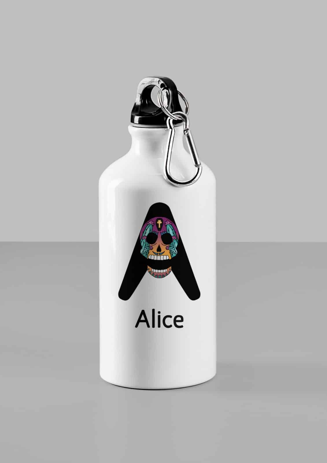 Gourde personnalisée maternelle, gourde personnalisée ecole, gourde personnalisable prenom, gourde personnalisable cadeau, gourde tete de mort.