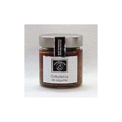 Ingrédients : légumes 65% (tomates sechées, aubergines, poivrons, courgettes), huile d’olive, huile de colza, ail, sel et poivre