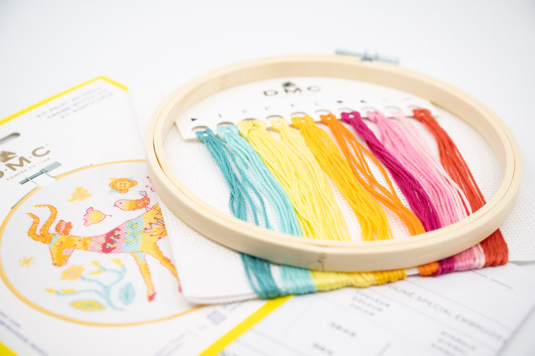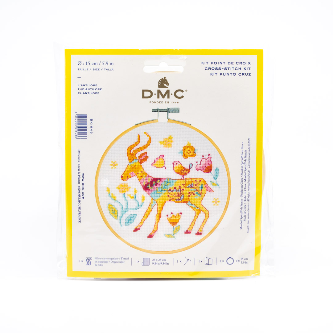 Voici un kit complet réalisé par DMC, livré avec un tambour, une toile, une aiguille, les fils et diagramme. Motif : Antilope avec un petit oiseau sur son dos. Idéal pour la décoration ou encore faire un joli cadeau.