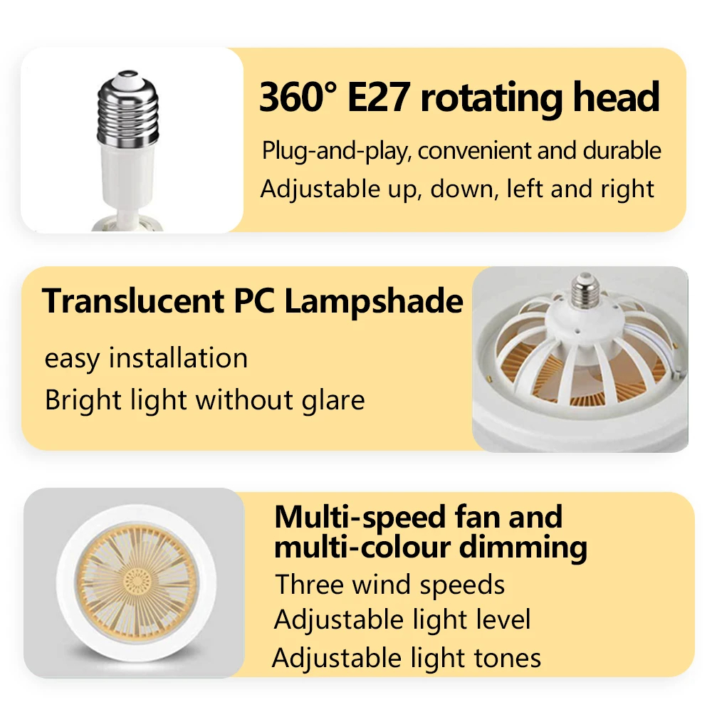 Lampe et Ventilateur de plafond silencieux avec télécommande 30W 220V