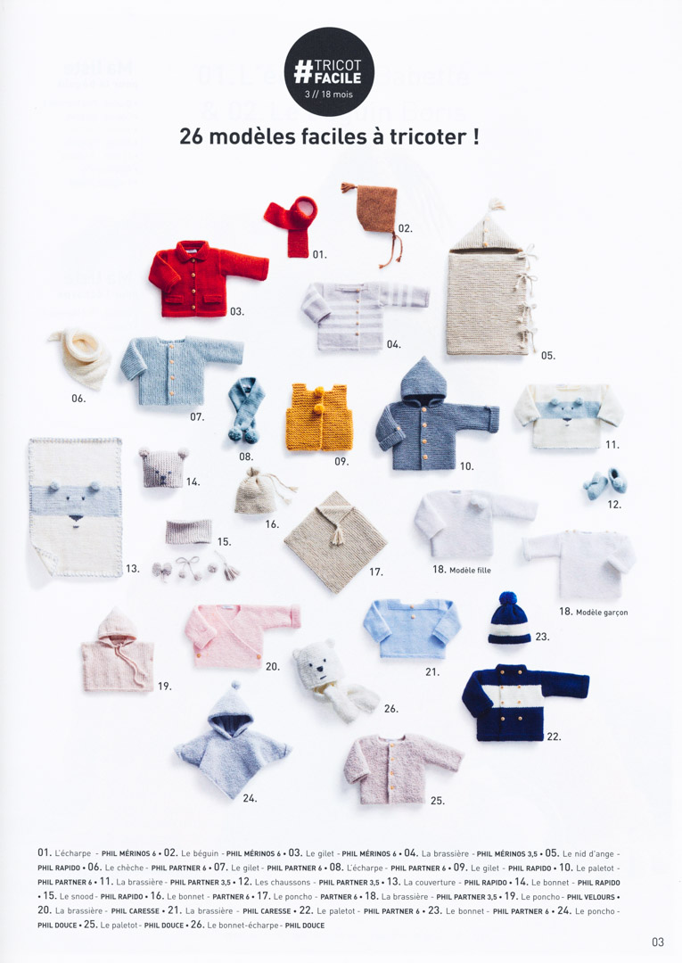 26 modèles faciles à tricoter de 3 mois à 18 mois. Des brassières, écharpes, ponchos et même des petits chaussons…
