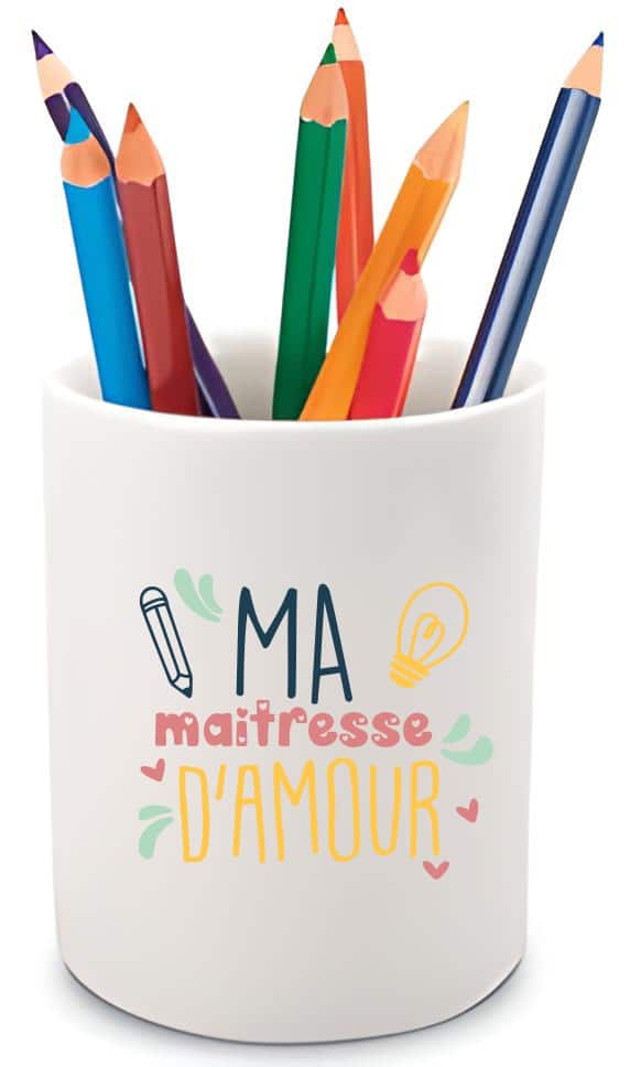 Premièrement, ce lot a été pensé pour être à la fois utile et rempli d’affection. Il comprend un charmant pot de crayons personnalisé avec la douce inscription « ma maîtresse d’amour ». Cet objet pratique trouvera naturellement sa place sur le bureau de la maîtresse, lui rappelant quotidiennement l’affection de ses élèves. Ensuite, le lot inclut également un élégant miroir de poche orné de la phrase reconnaissante « merci maîtresse d’avoir été super ». Ce petit accessoire, facile à glisser dans un sac, sera un rappel constant de l’impact positif qu’elle a eu.