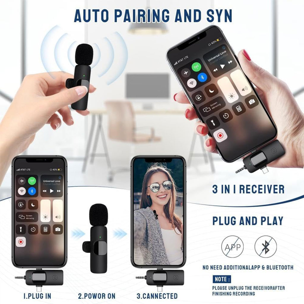 Microphone cravate sans fil 3 en 1 Plug and Play avec puce de réduction du bruit – ميكروفون لاسلكي