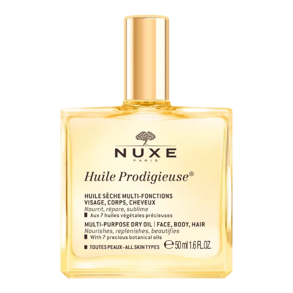 Nuxe Huile Prodigieuse Tunisie 50ml : Huile sèche 3-en-1, idéale pour le visage, le corps et les cheveux. Elle nourrit, répare et sublime la peau et les cheveux, offrant un éclat satiné et une protection contre les agressions extérieures.