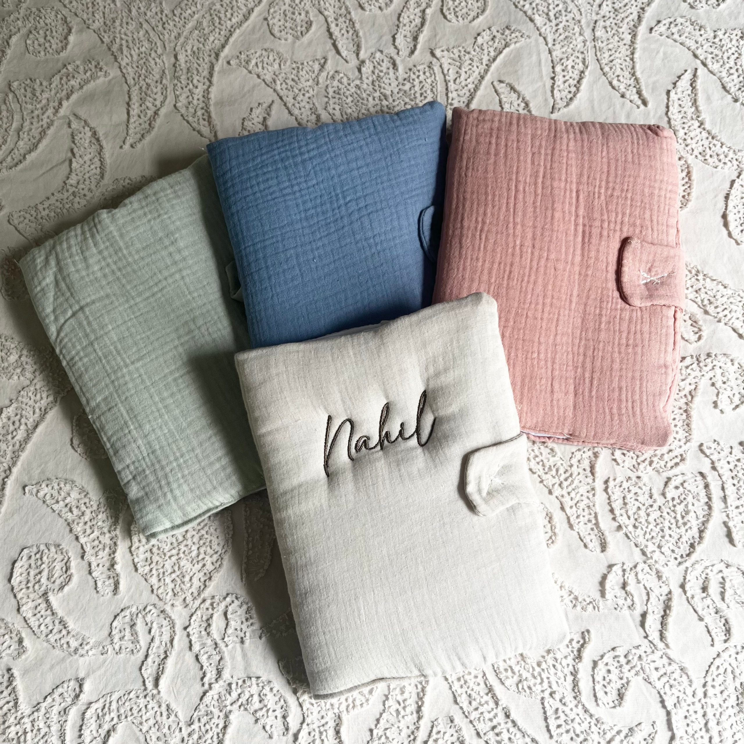Protégez le carnet de santé de votre bébé avec notre protège-carnet brodé personnalisé au prénom de votre enfant. Chaque protège-carnet est soigneusement confectionné en Europe et brodé en France avec des matières douces et durables.
