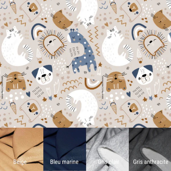 Ce modèle possède des poignets en bord côte qu’il faudra retrousser en tout début de taille et à déplier au fur et à mesure que votre enfant grandit. On pourra également retrousser la ceinture de la taille vers l’intérieur. Votre enfant pourra alors prendre 10 cm avant de changer de taille.