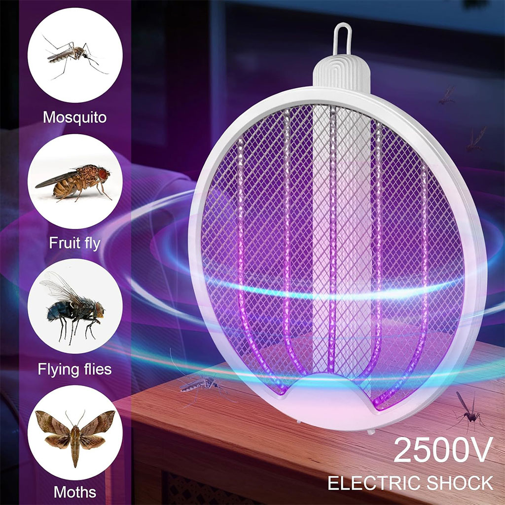 Tapette à Mouche électrique 3 en 1 3000V Rechargeable par USB – صاعق الناموس
