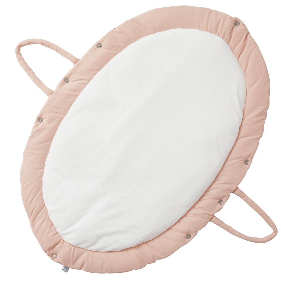 Un tapis moelleux en minky tout doux, doublé de coton enduit à l’extérieur le rendant imperméable et isolant, qui offre un espace de jeu confortable à bébé partout où vous allez ! Grâce à un système de boutons pression, il se plie très facilement pour former un sac dans lequel vous pourrez transporter quelques jouets.