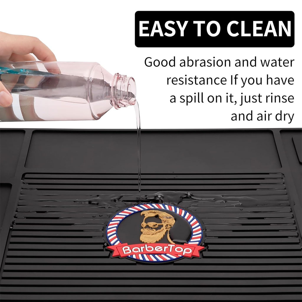 【Design raisonnable】Divisé en différentes zones de travail, vous permettant d’organiser votre poste de travail plus facilement et plus rapidement, et de mettre tous les outils de barbier au bon endroit Protection et protection : il y a trois aimants dans la zone de travail à droite, et vous pouvez placer des tondeuses. Les barres sur le devant du tapis peuvent empêcher les outils de glisser, et le dos est également collant, de sorte que les tapis de barbier et les outils peuvent être mieux fixés, y compris la surface en verre Grande surface : environ divisé en cinq zones différentes,…