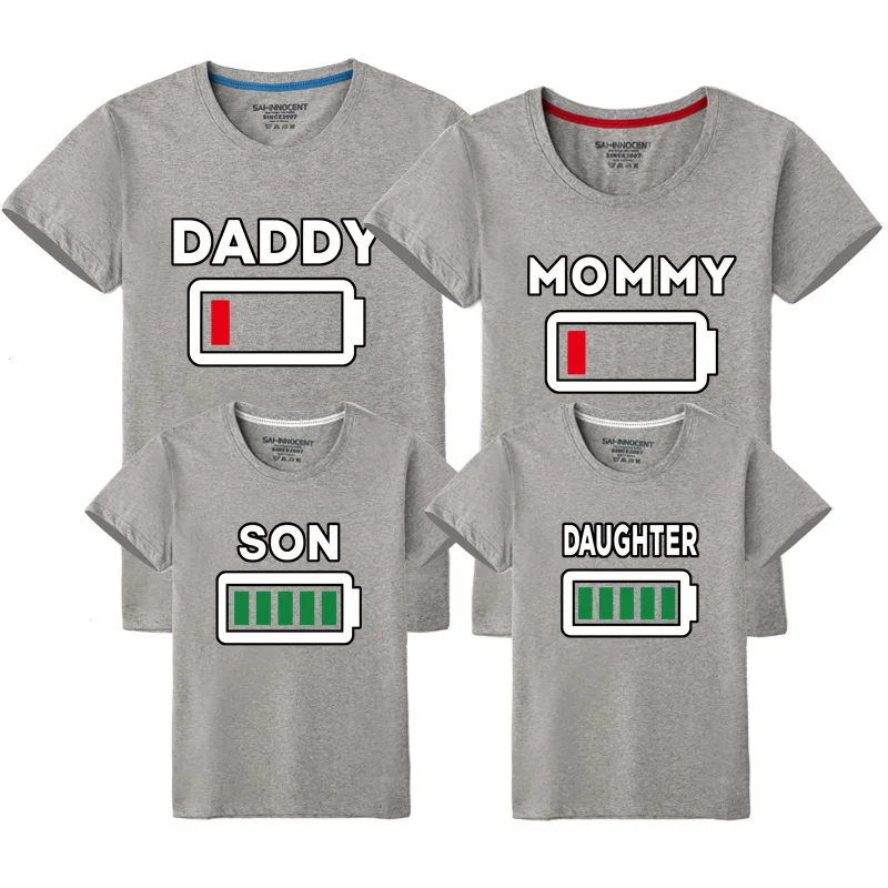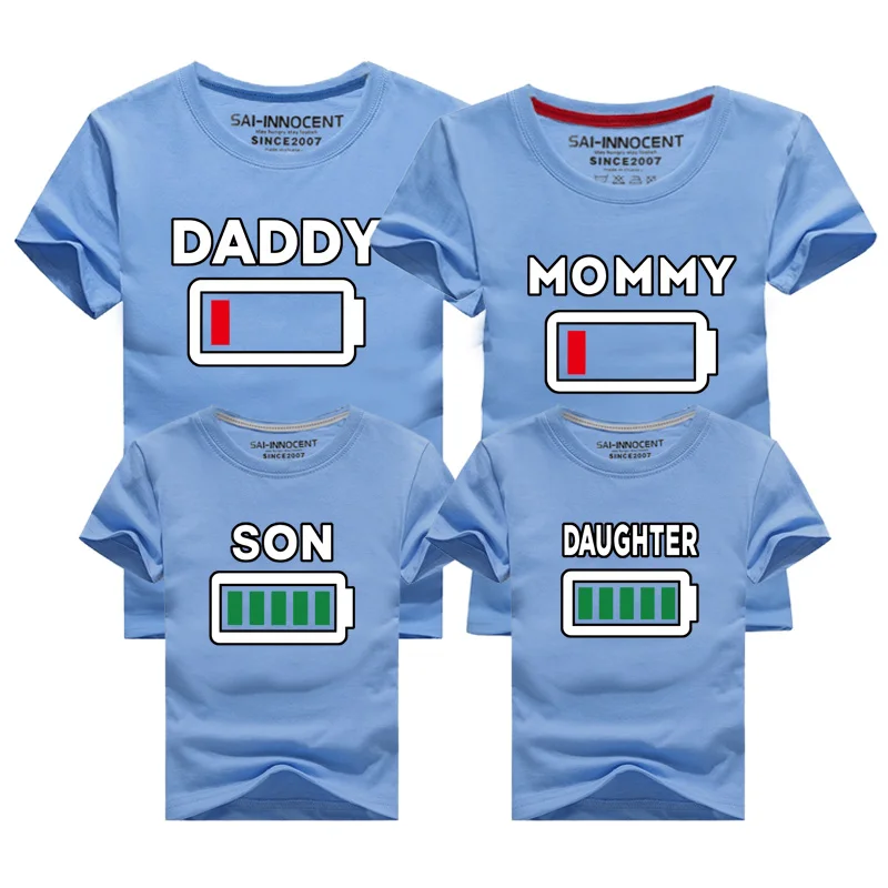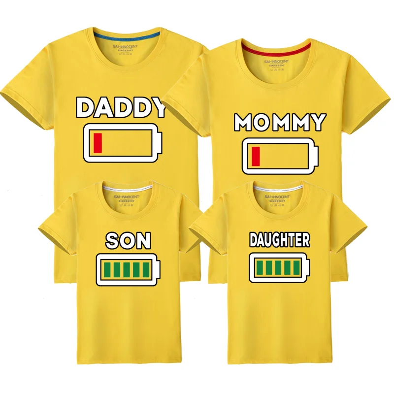 These t-shirts are ideal for casual family activities, from strolls with the baby to fun outings. The playful battery design adds a touch of humor, making them a great choice for family photos or gatherings. They’re also perfect for everyday wear, offering comfort and style for the whole family.