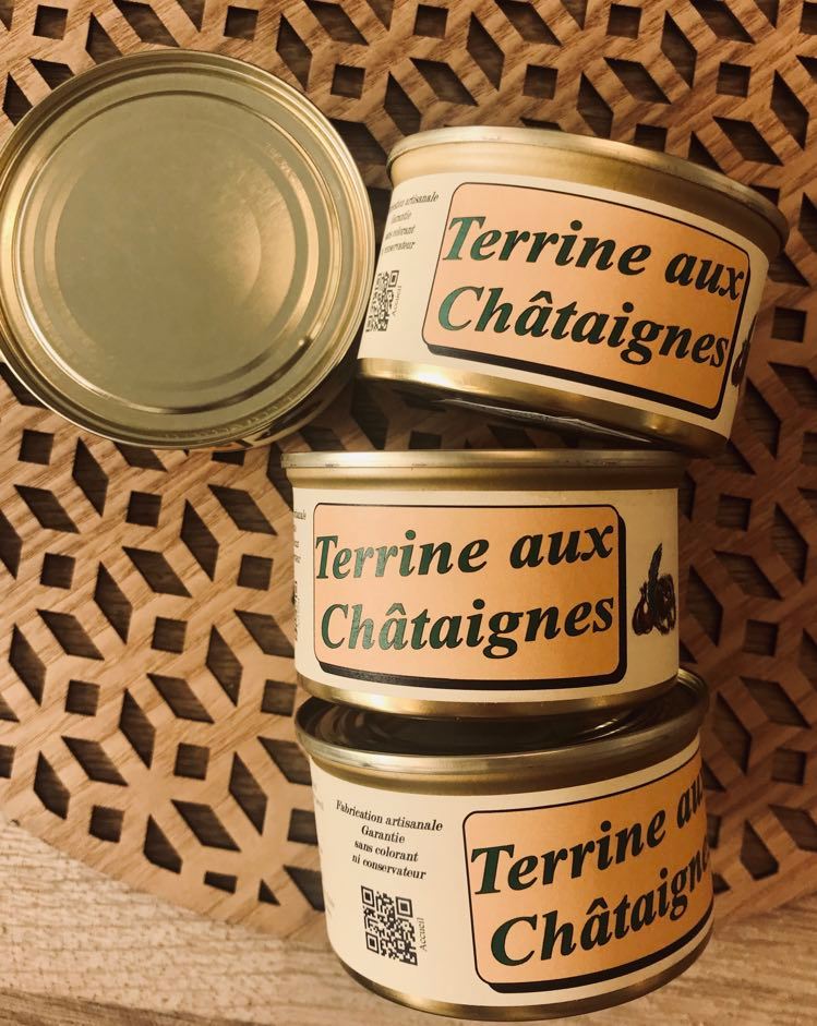 Ingrédients : viande et foie de porc, châtaignes 15%, genièvre 3% oeufs, sel, marc de Provence, poivre, aromates